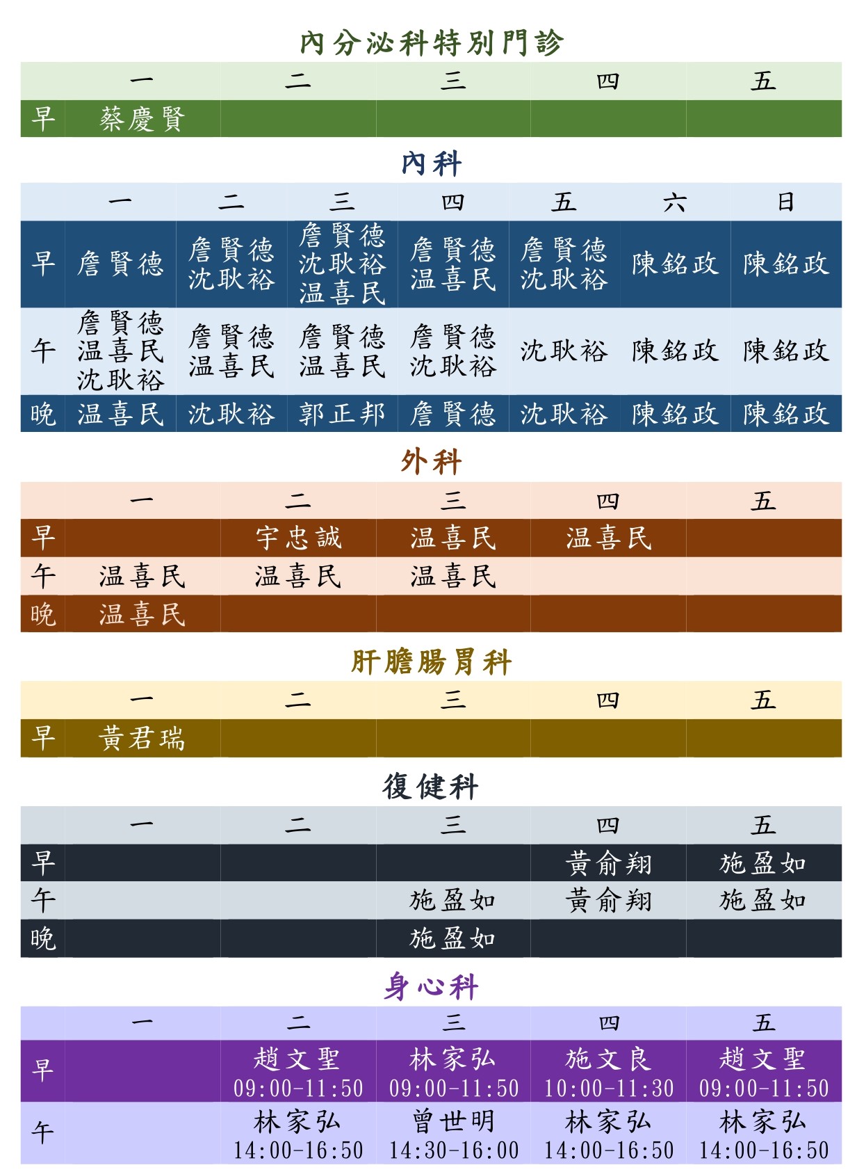 星期四早上、下午門診